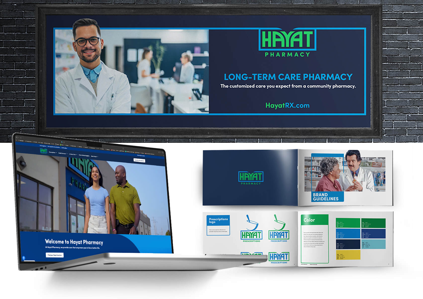 Not just design, but strategy rooted in research, empathy, and clarity. To gain a comprehensive understanding of who Hayat is, we set out on a mission of deep discovery. We interviewed not only internal leadership and employees, but external providers and partners, and surveyed over 70 patients and caregivers. These insights allowed us to uncover Hayat’s authentic differentiators and consistent themes of caring, trustworthiness, helpfulness, and community-centered support. By mapping the competitive landscape (chains, independents, mail-order pharmacies, and healthcare conglomerates) we clarified Hayat’s unique edge: nimbleness, in-home services, and patient advocacy.